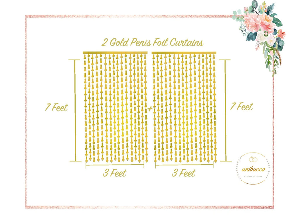 Let your bachelorette party shine with our Gold Foil Fringe Curtains! This stunning backdrop is sure to make for a memorable night. Flaunt a little flirtatious fun and make sure all eyes are on you as you walk through this metallic flurry of gold penises!