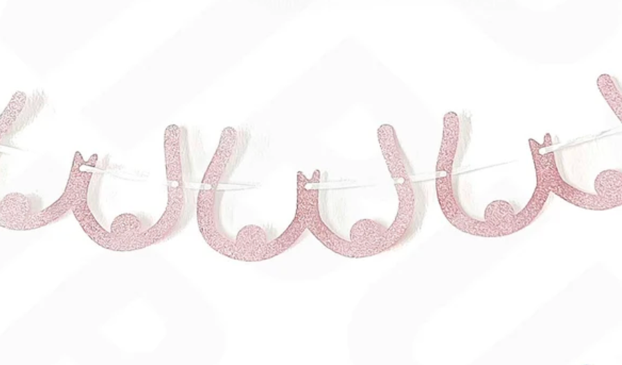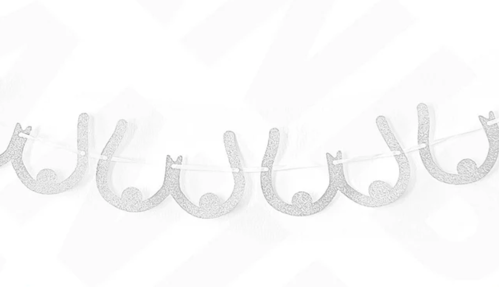 Our boobs are laser cut out of super study rose gold glitter cardstock! Due to this, the backside of the letters are white.