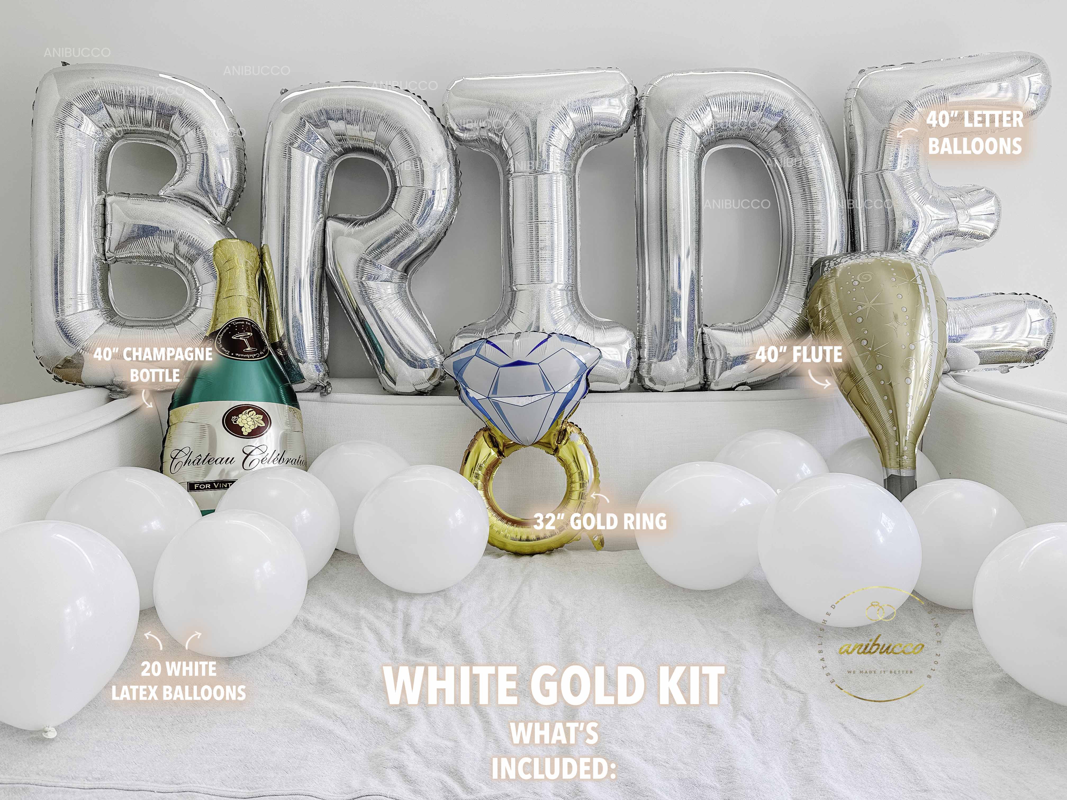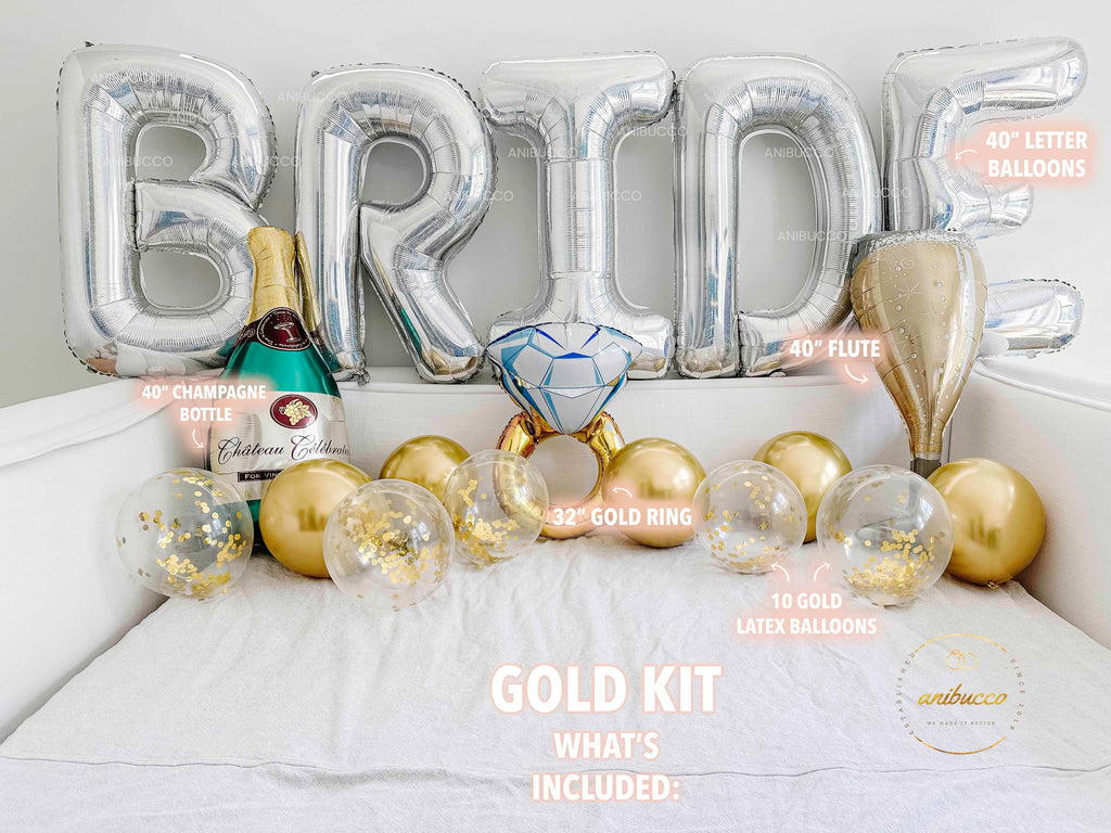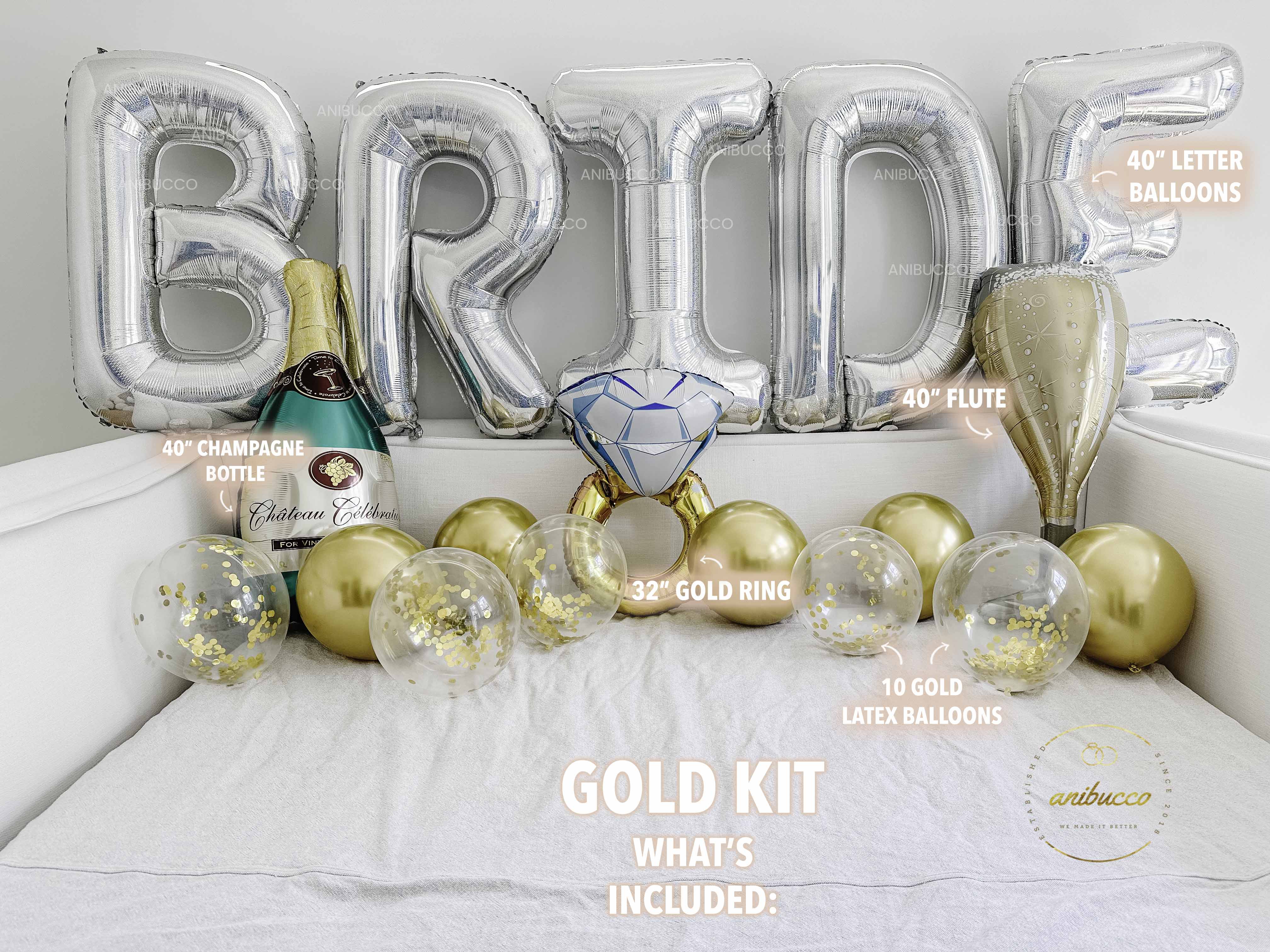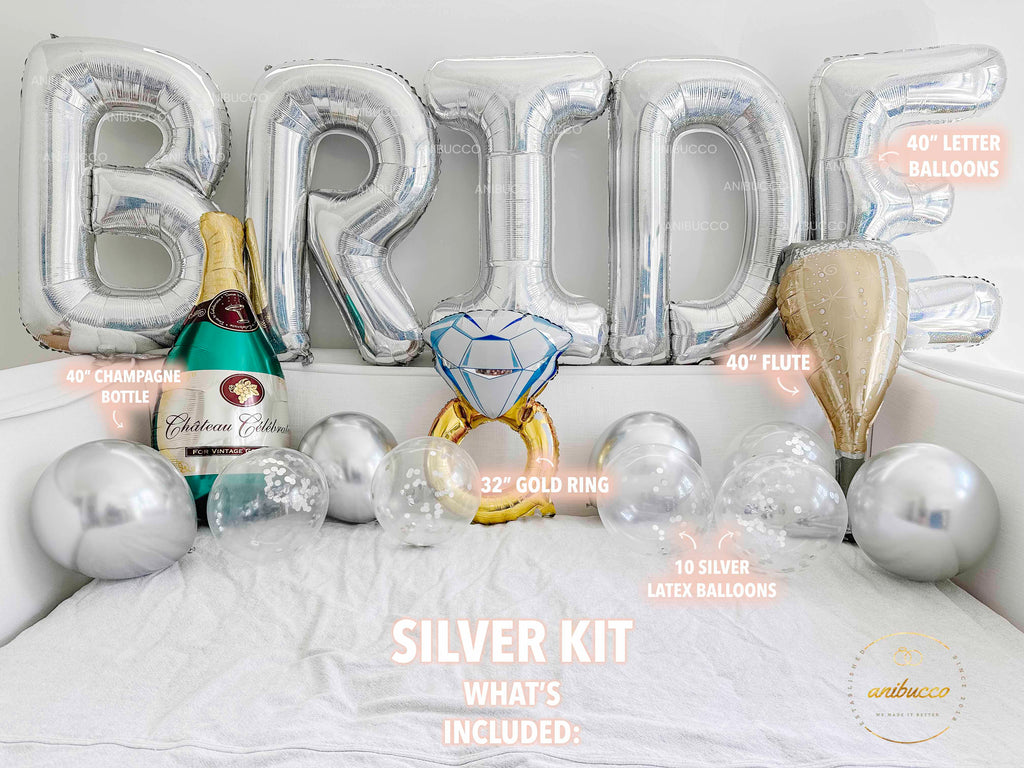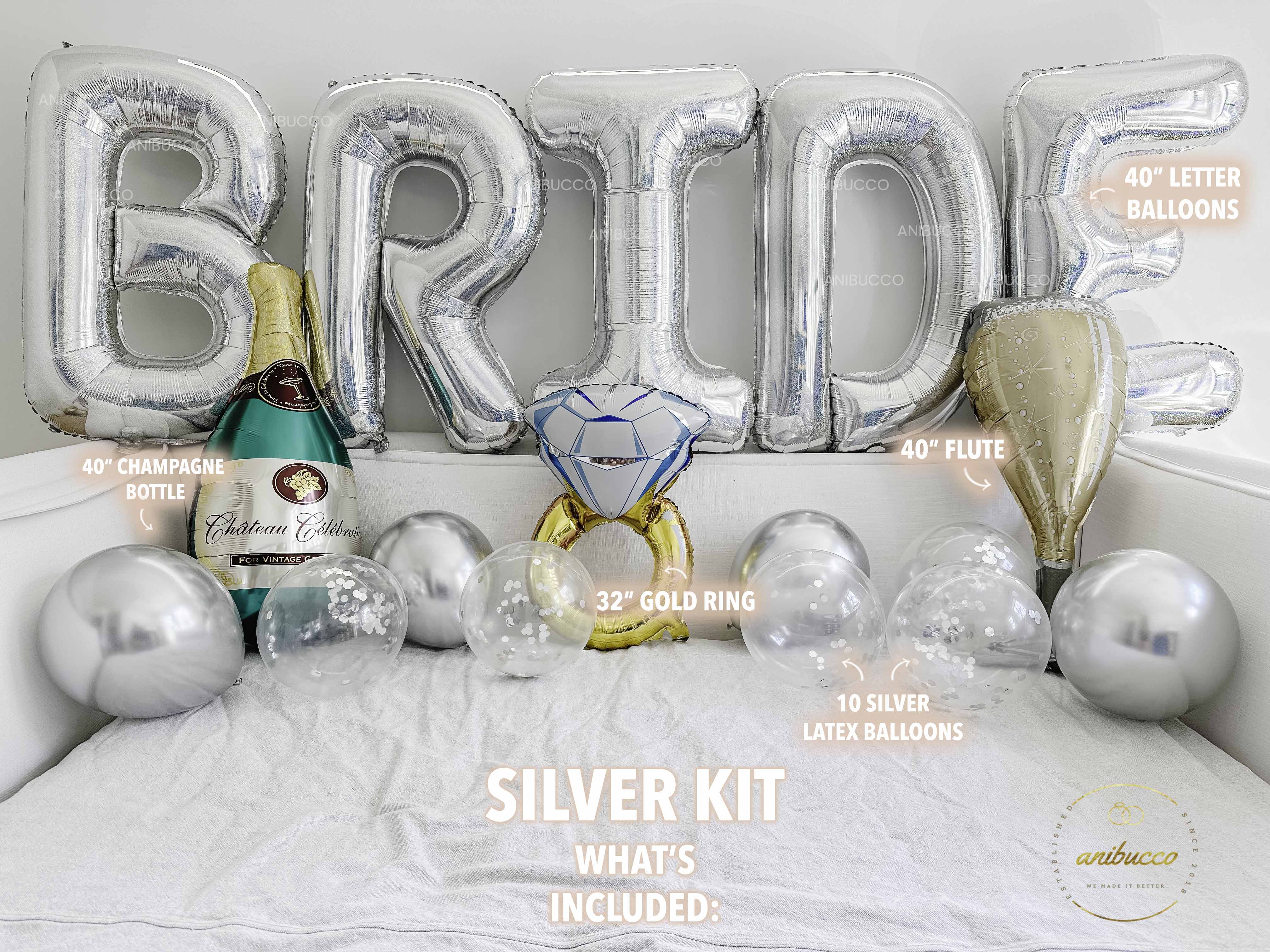Make sure your bachelorette bash is unforgettable with our XL BRIDE Balloon Kit! This exclusive kit, designed by Anibucco includes our signature "BRIDE" statement balloons in holographic silver plus four complementing bachelorette-approved balloons. With this set, you'll be able to decorate the entire party and get the girls ready to party hard!