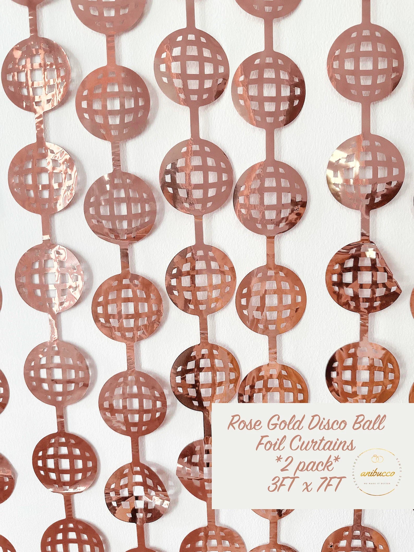 Light up the night and add some extra sparkle to any party with this eye-catching Rose Gold Disco Ball Foil Curtain! It makes the perfect bachelorette backdrop and is guaranteed to get a dance floor shaking with its reflective foil finish! Ready to party? Let's hit the disco! Our curtains are constructed of high-quality laser cut foil. Super shiny and flowy, perfect for any event for a large statement!