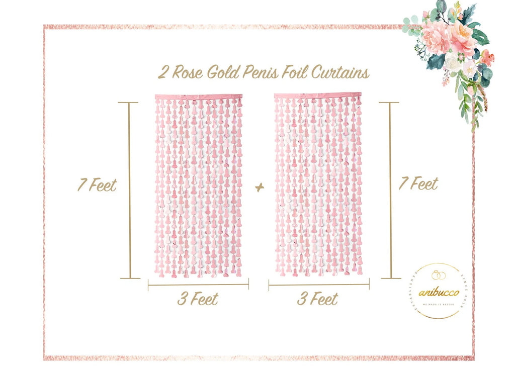 Let your bachelorette party shine with our Rose Gold Penis Foil Fringe Curtains! This stunning backdrop is sure to make for a memorable night. Flaunt a little flirtatious fun and make sure all eyes are on you as you walk through this metallic flurry of rose gold penises! Our curtains are constructed of high-quality laser cut foil. Super shiny and flowy, perfect for any event for a large statement!