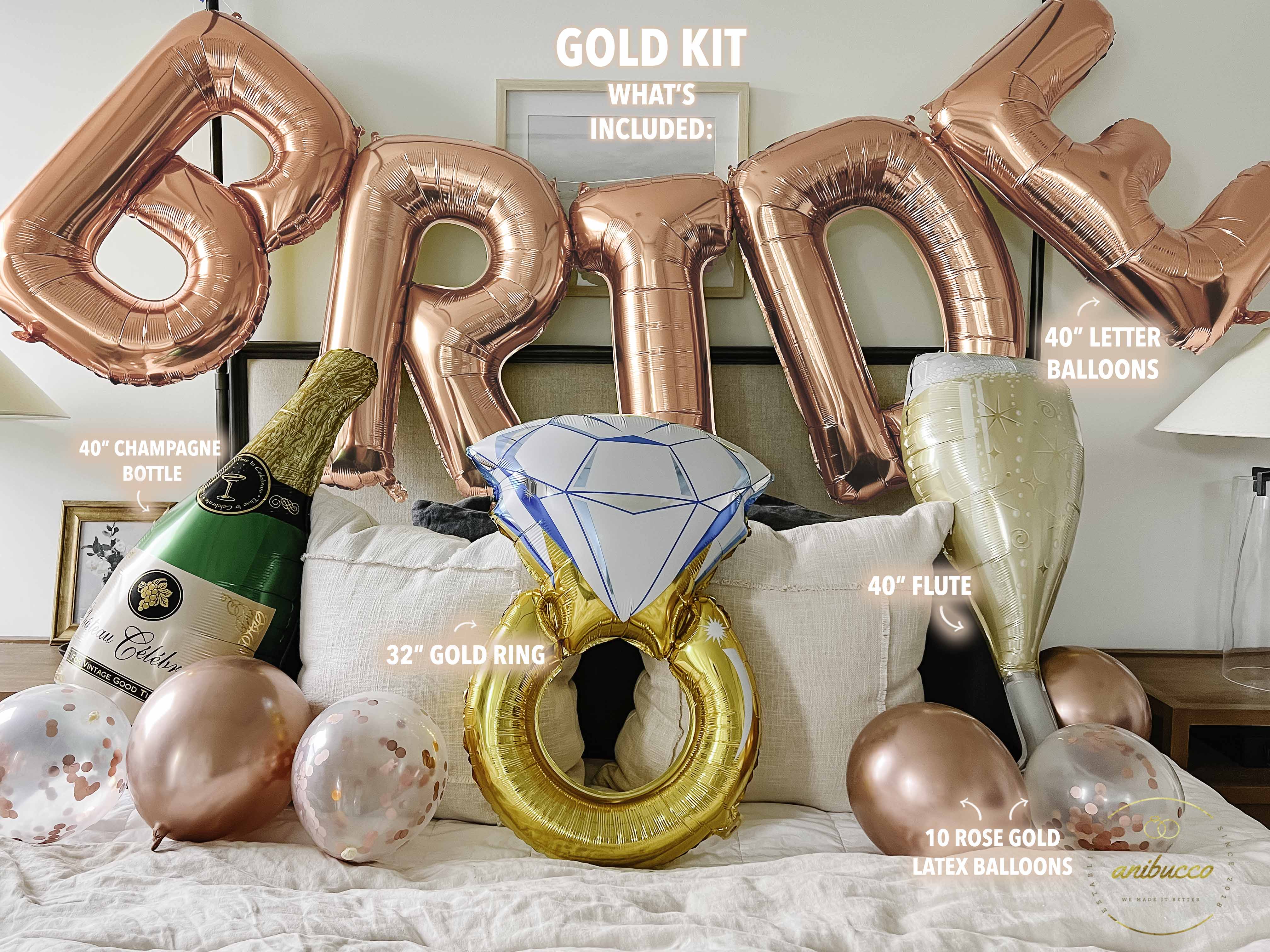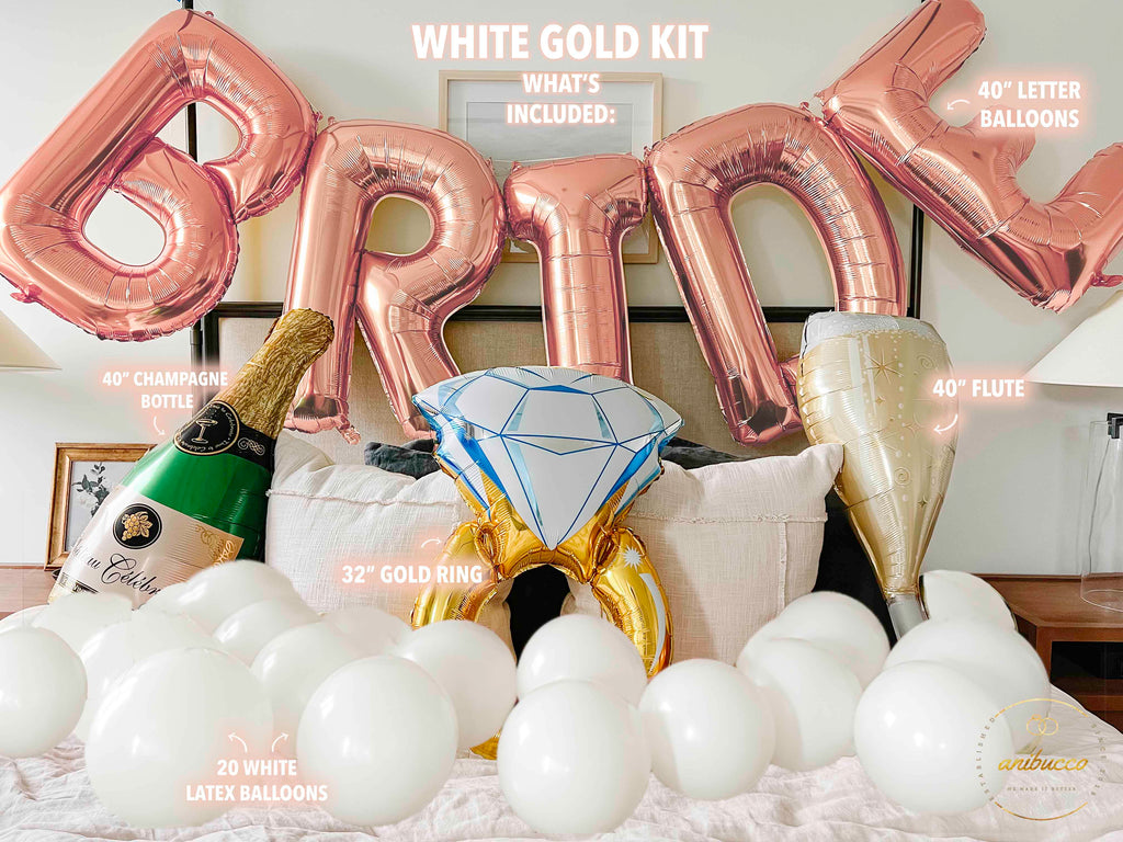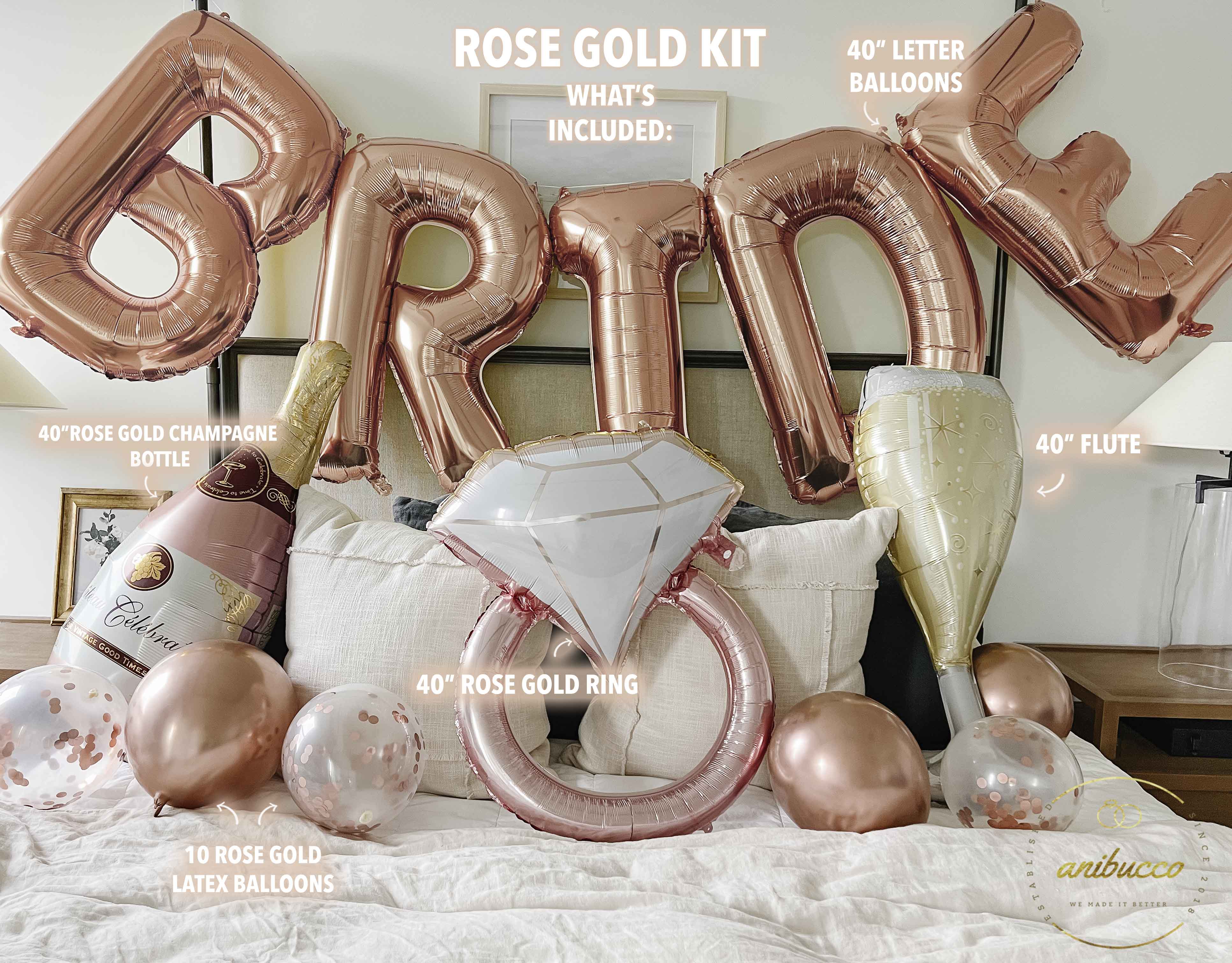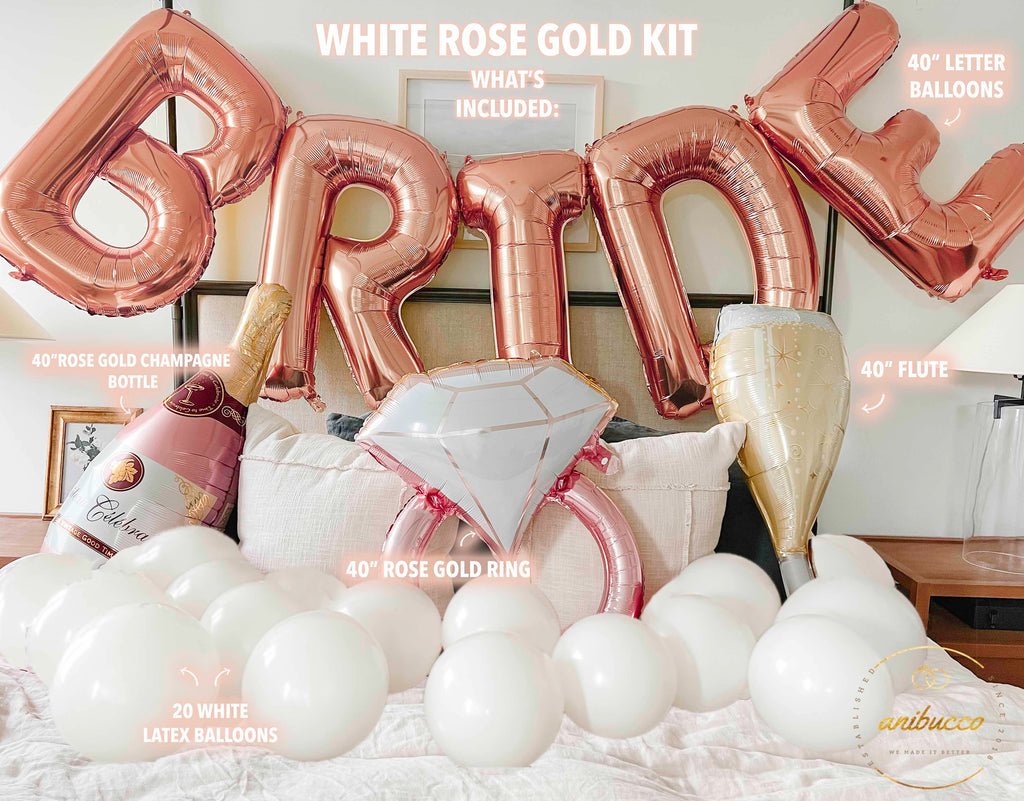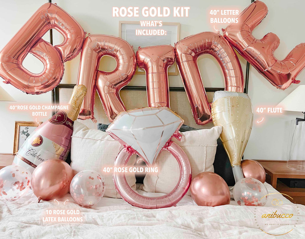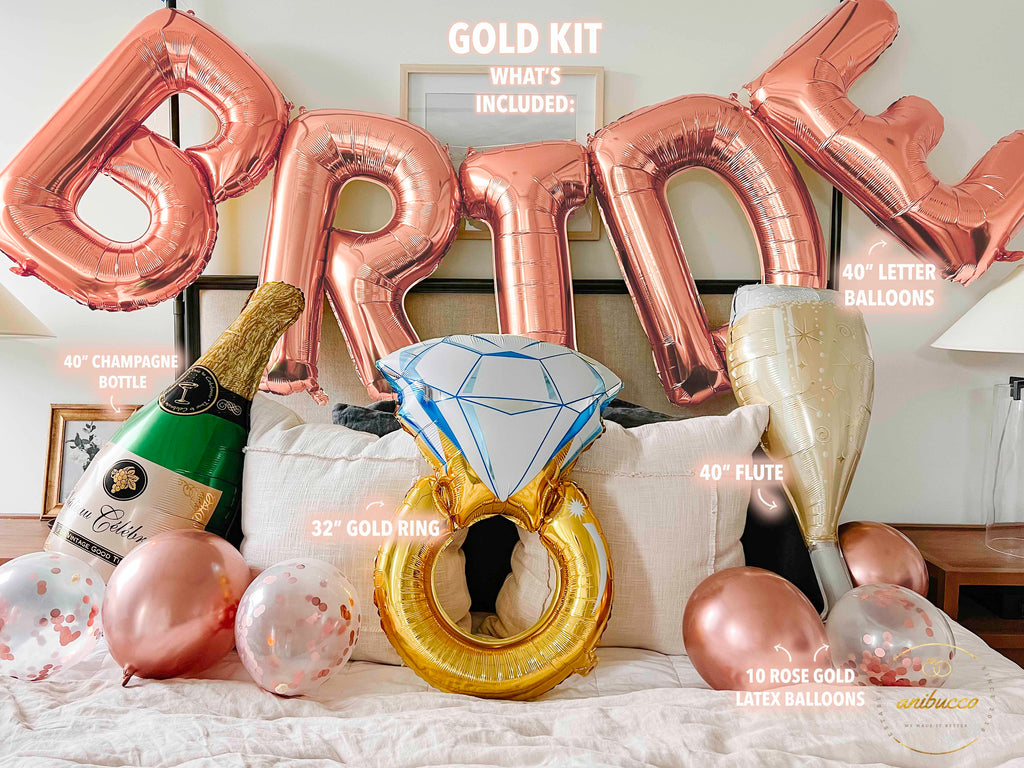 Make sure your bachelorette bash is unforgettable with our XL BRIDE Balloon Kit! This exclusive kit, designed by Anibucco includes our signature "BRIDE" statement balloons in rose gold plus four complementing bachelorette-approved balloons. With this set, you'll be able to decorate the entire party and get the girls ready to party hard!