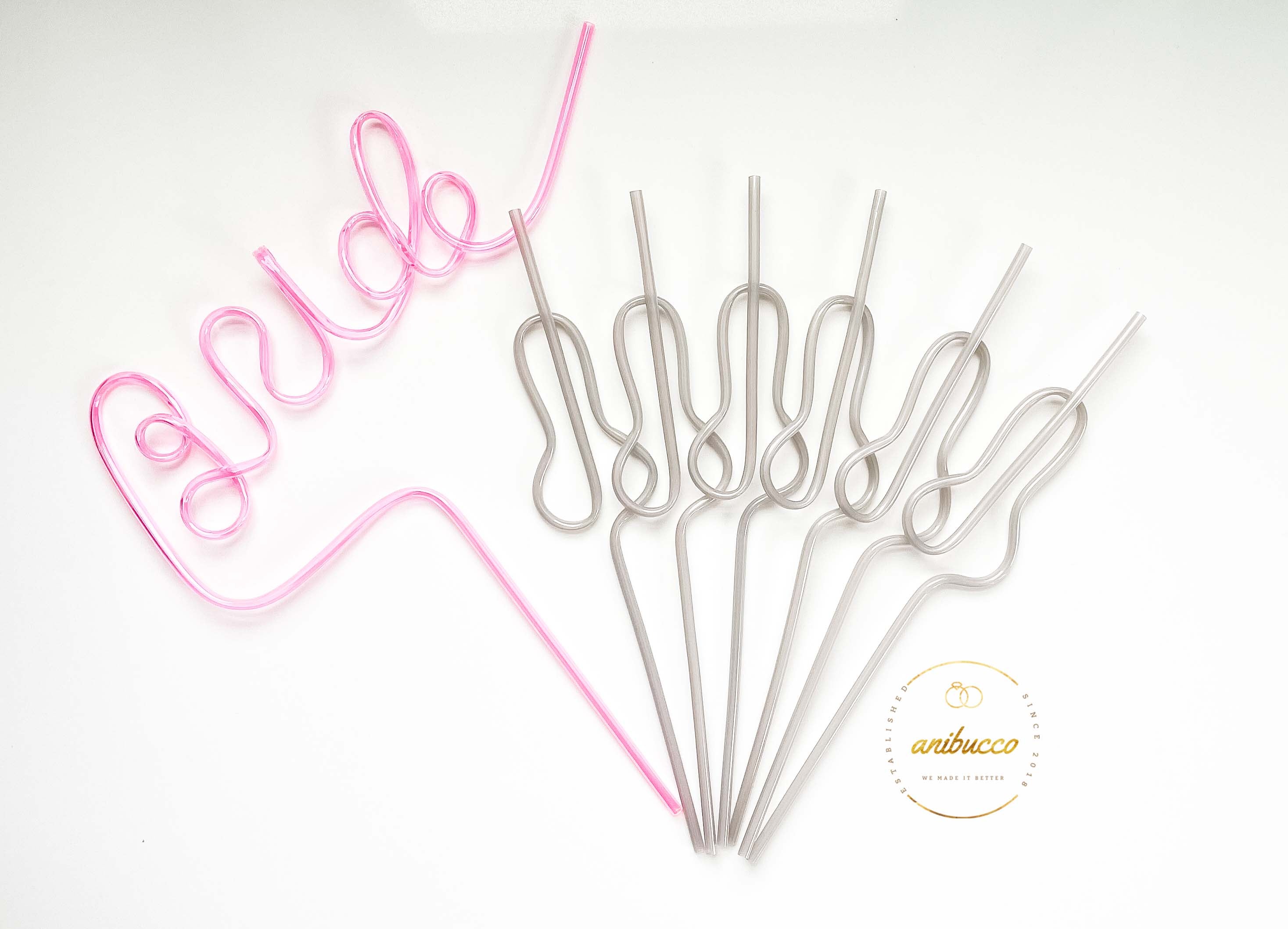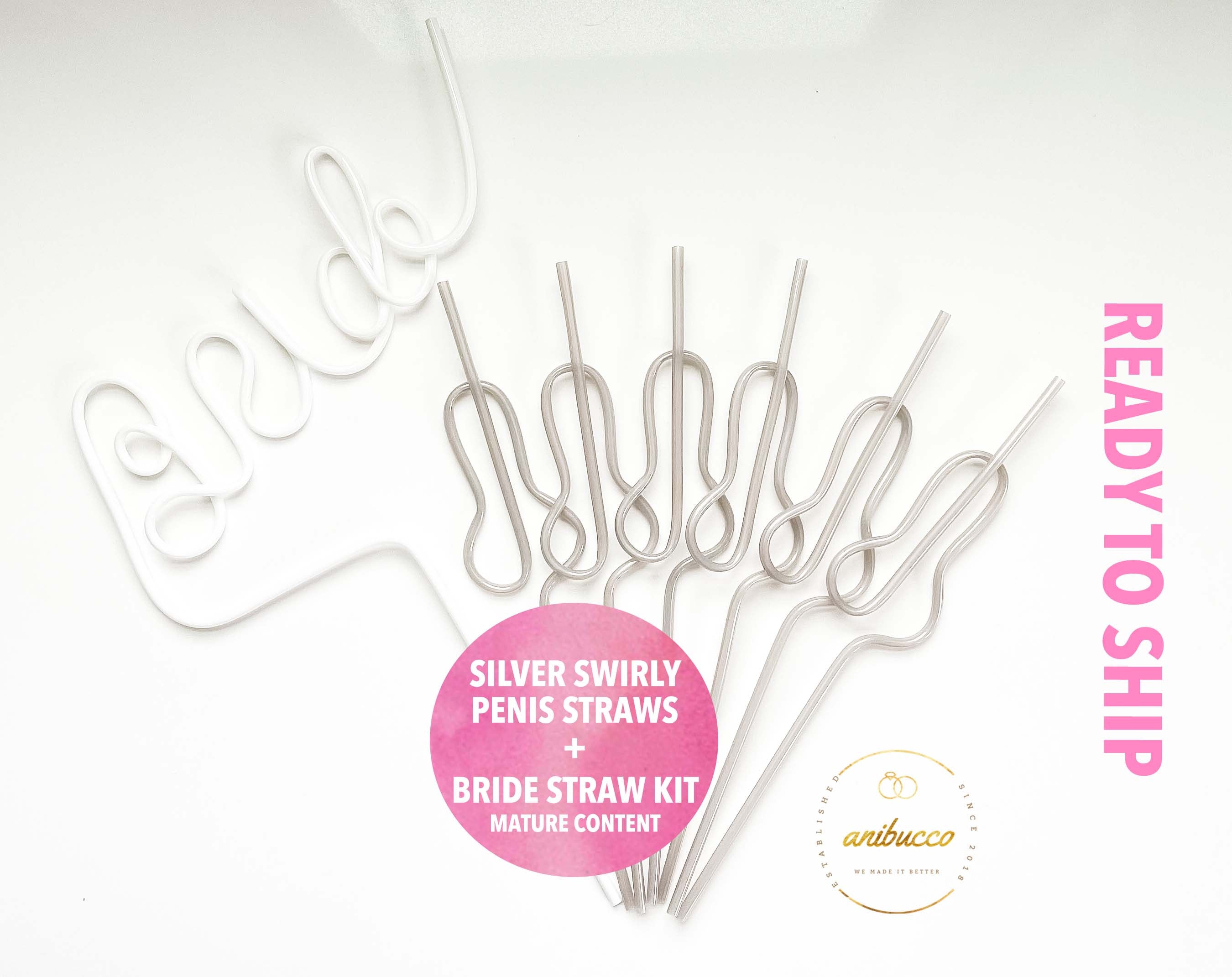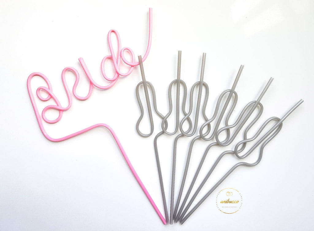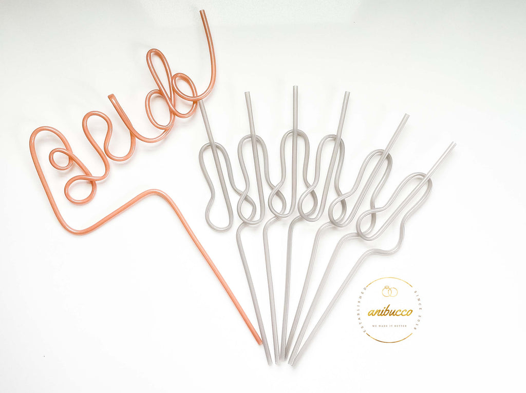 Silver Swirly Willy Straws + Bride Straw Set